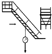 6.2.13. Прочность ограждения вертикальной лестницы проверяется путем прикладывания горизонтальной нагрузки 0,54 кН (54 кгс) в точках, расположенных на расстоянии не более 1,5 м друг от друга по всей высоте лестницы.