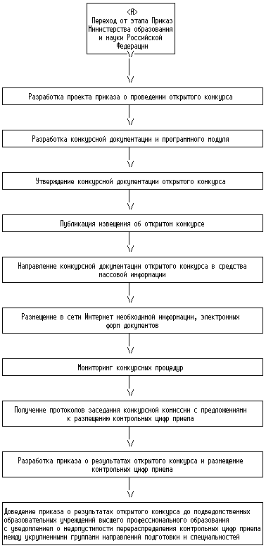 После опубликования приказа Рособразования о проведении открытого конкурса на официальном Интернет-сайте Рособразования, указанном в пункте 6.2 настоящего Регламента, аккредитованные образовательные учреждения высшего профессионального образования должны представить в Рособразование заявки на открытый конкурс.