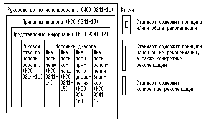 ИСО 9241-12 - ИСО 9241-17 следует использовать в качестве источника информации при выборе компромиссных решений при проектировании и решении проблем, связанных с проектированием. В каждой части содержатся рекомендации, относящиеся к детальному проектированию диалогов, которые следует применять при проектировании конкретного диалога.