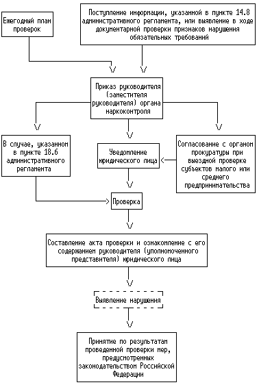 1. Административный регламент Федеральной службы Российской Федерации по контролю за оборотом наркотиков по исполнению государственной функции по проведению проверок при осуществлении государственного контроля (надзора) в сфере деятельности, связанной с оборотом прекурсоров наркотических средств и психотропных веществ (далее - административный регламент), разработан в целях повышения качества исполнения государственной функции по проведению проверок по вопросам, отнесенным к компетенции Федеральной службы Российской Федерации по контролю за оборотом наркотиков, принятию по их результатам мер, предусмотренных законодательством Российской Федерации, и устанавливает сроки и последовательность административных процедур и административных действий ФСКН России и ее территориальных органов (далее - органы наркоконтроля, если не оговорено иное), а также порядок взаимодействия между органами наркоконтроля, их должностными лицами и юридическими лицами при осуществлении государственной функции.