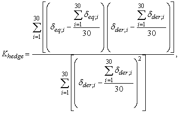дельта_eq;i - i-тая величина изменения цены ценной бумаги, допущенной к торгам на фондовой бирже (значения индекса, который является базовым активом срочных договоров (контрактов), заключаемых фондовой биржей), из сгруппированных в хронологической последовательности величин изменения цены этой ценной бумаги (значения этого индекса);