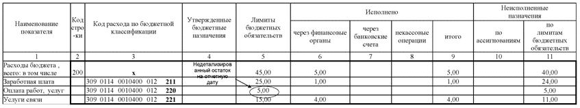 Кроме того, равенство строки 450 "Результат исполнения (дефицит/профицит)" и 500 "Источники финансирования дефицита - всего" по графе 9 "Неисполненные назначения" не соблюдается.