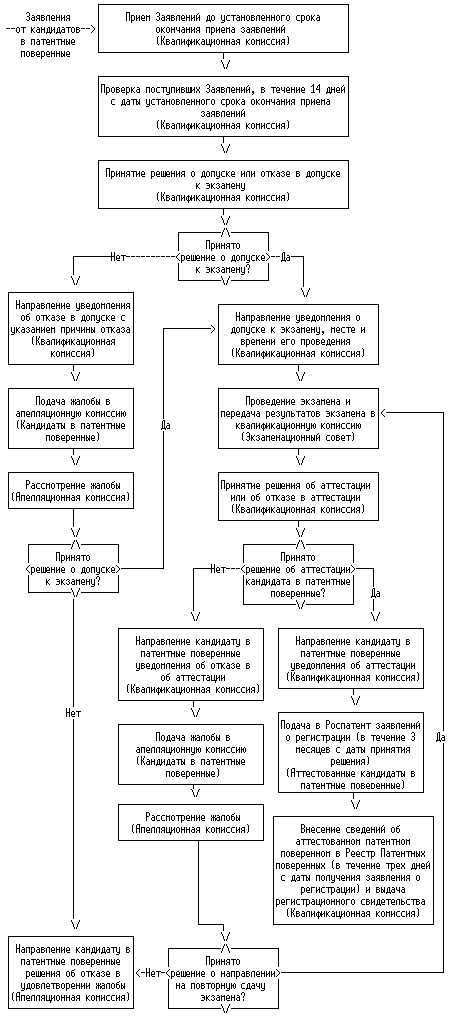 - рассмотрении заявления об аттестации в качестве патентного поверенного;