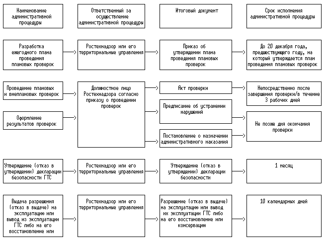 Блок-схема исполнения государственной функции по осуществлению государственного контроля и надзора за безопасностью ГТС приведена в приложении 3 к настоящему Административному регламенту.