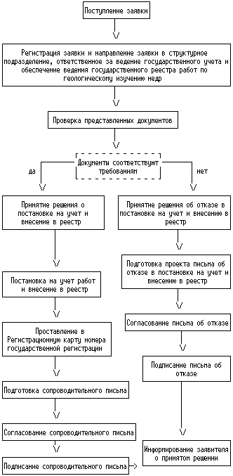 БЛОК-СХЕМА ИСПОЛНЕНИЯ ГОСУДАРСТВЕННОЙ ФУНКЦИИ ПО ВЕДЕНИЮ ГОСУДАРСТВЕННОГО УЧЕТА И ОБЕСПЕЧЕНИЮ ВЕДЕНИЯ ГОСУДАРСТВЕННОГО РЕЕСТРА РАБОТ ПО ГЕОЛОГИЧЕСКОМУ ИЗУЧЕНИЮ НЕДР