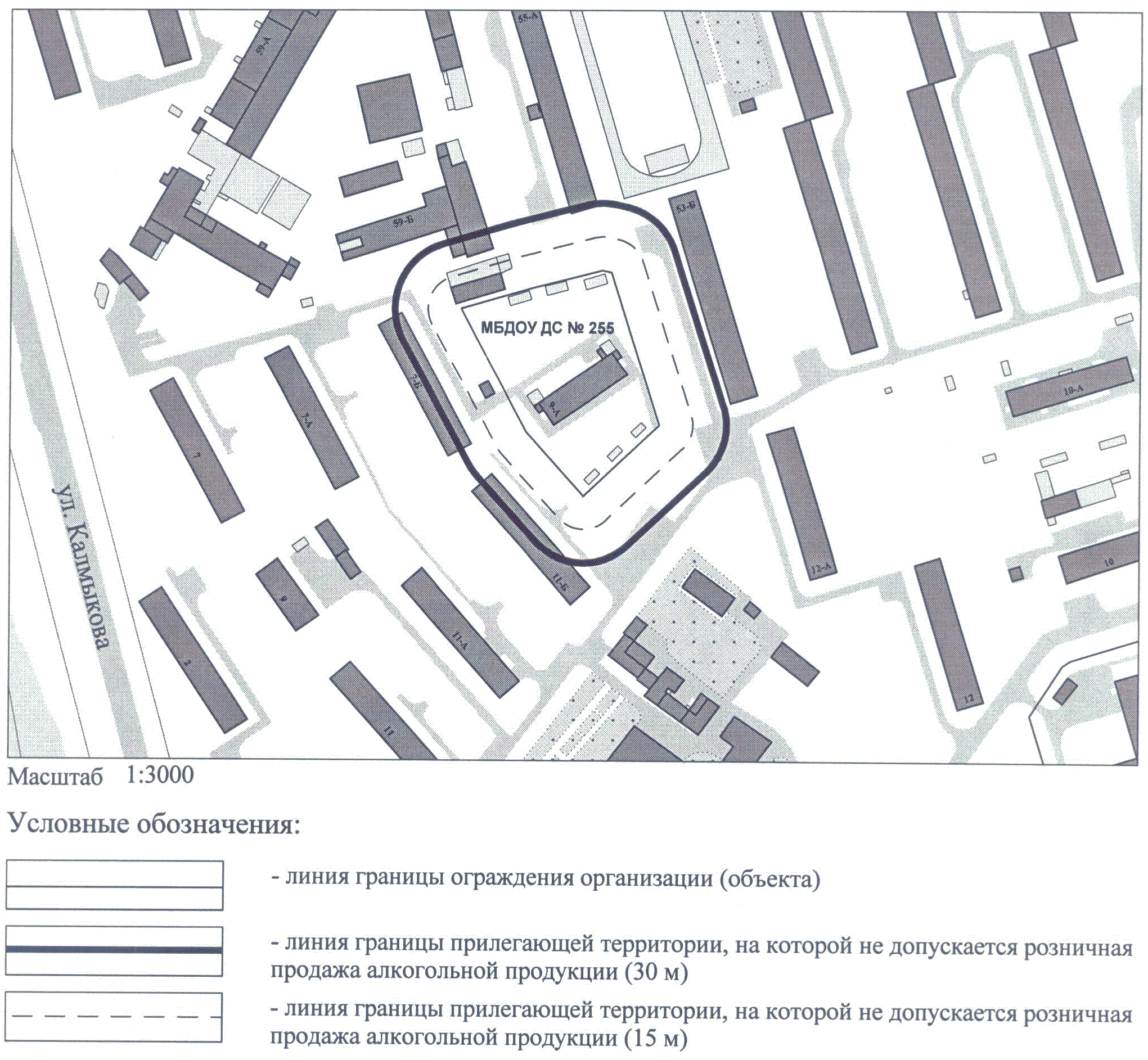 СХЕМА ГРАНИЦ ТЕРРИТОРИИ, НА КОТОРОЙ НЕ ДОПУСКАЕТСЯ РОЗНИЧНАЯ ПРОДАЖА АЛКОГОЛЬНОЙ ПРОДУКЦИИ, ПРИЛЕГАЮЩЕЙ К МБДОУ ДС N 255 ПО АДРЕСУ: Г. ЧЕЛЯБИНСК, МЕТАЛЛУРГИЧЕСКИЙ РАЙОН, УЛ. КАЛМЫКОВА, 9-А