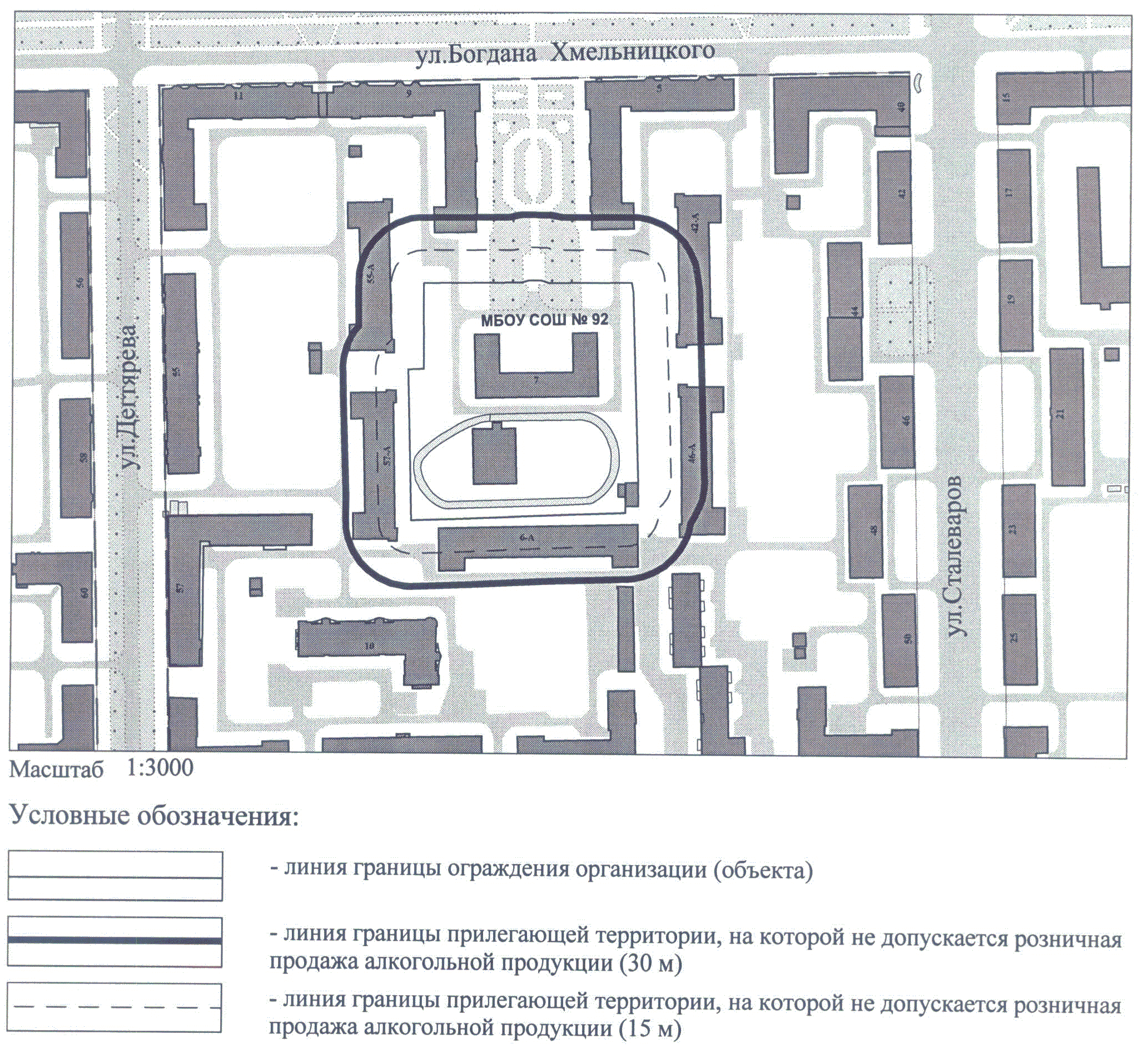 СХЕМА ГРАНИЦ ТЕРРИТОРИИ, НА КОТОРОЙ НЕ ДОПУСКАЕТСЯ РОЗНИЧНАЯ ПРОДАЖА АЛКОГОЛЬНОЙ ПРОДУКЦИИ, ПРИЛЕГАЮЩЕЙ К МБОУ СОШ N 92 ПО АДРЕСУ: Г. ЧЕЛЯБИНСК, МЕТАЛЛУРГИЧЕСКИЙ РАЙОН, УЛ. БОГДАНА ХМЕЛЬНИЦКОГО, 7
