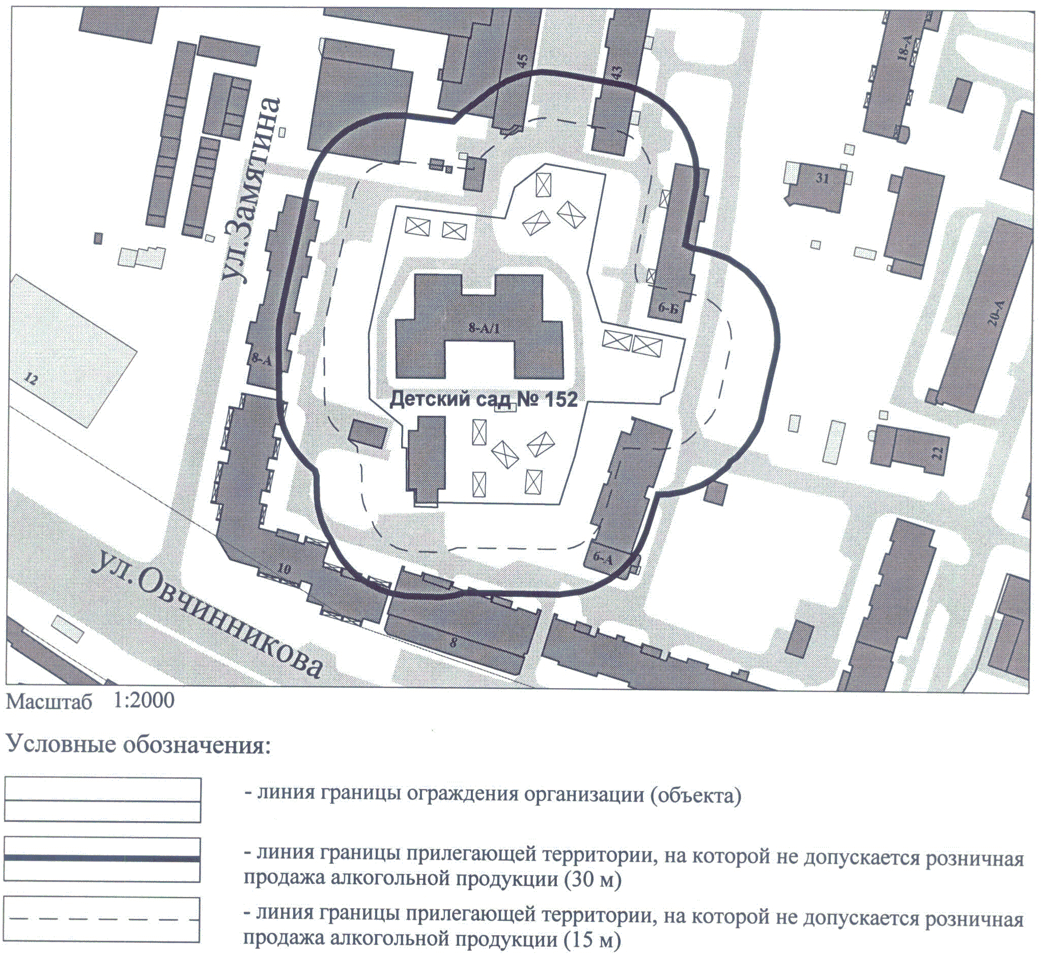 СХЕМА ГРАНИЦ ТЕРРИТОРИИ, НА КОТОРОЙ НЕ ДОПУСКАЕТСЯ РОЗНИЧНАЯ ПРОДАЖА АЛКОГОЛЬНОЙ ПРОДУКЦИИ, ПРИЛЕГАЮЩЕЙ К ДЕТСКОМ САДУ N 152 ПО АДРЕСУ: Г. ЧЕЛЯБИНСК, СОВЕТСКИЙ РАЙОН, УЛ. ОВЧИННИКОВА, 8-А/1