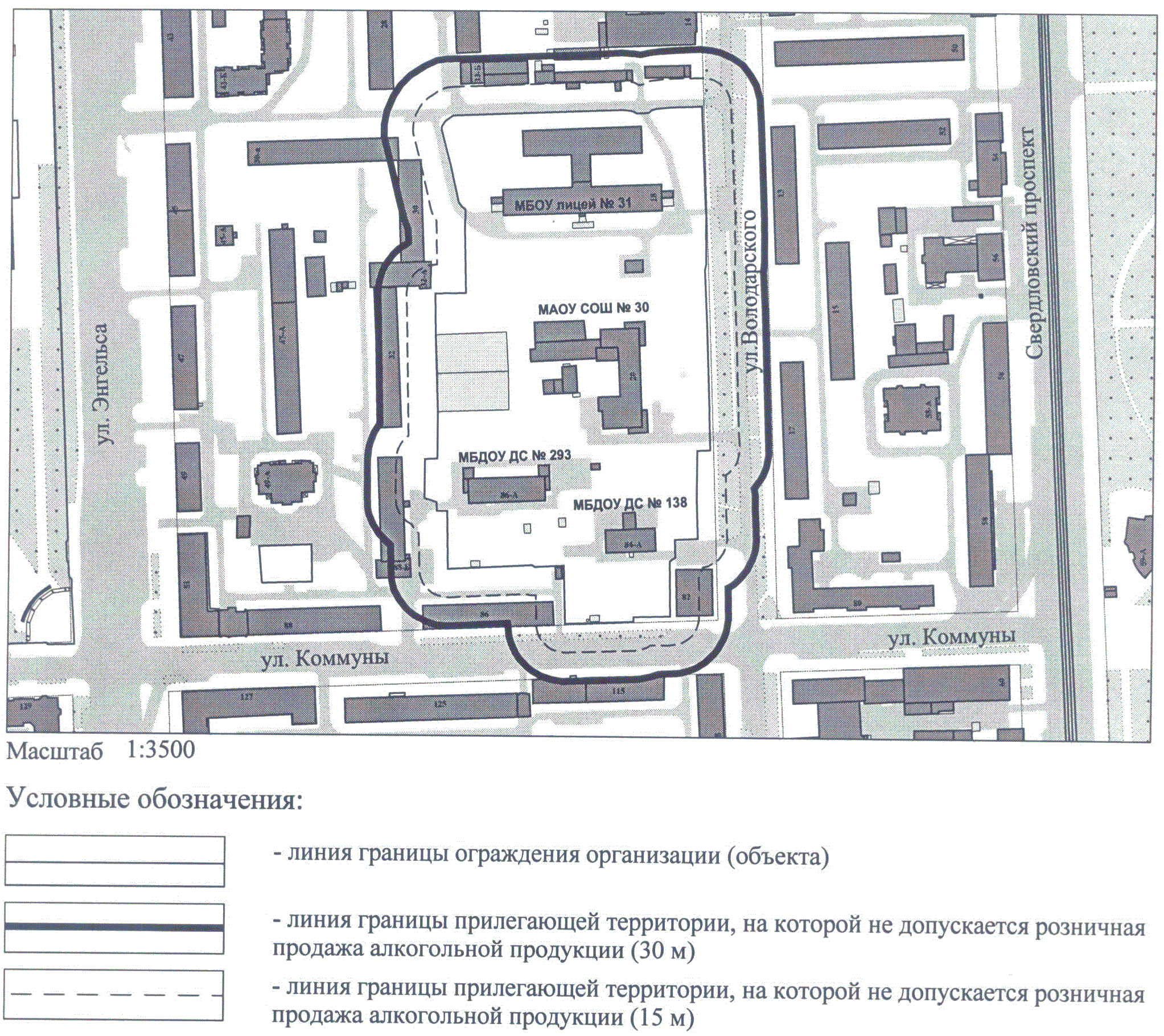 СХЕМА ГРАНИЦ ТЕРРИТОРИИ, НА КОТОРОЙ НЕ ДОПУСКАЕТСЯ РОЗНИЧНАЯ ПРОДАЖА АЛКОГОЛЬНОЙ ПРОДУКЦИИ, ПРИЛЕГАЮЩЕЙ К МБДОУ ДС N 138, МБДОУ ДС N 293, МАОУ СОШ N31, МБОУ ЛИЦЕЙ N 31 ПО АДРЕСУ: Г. ЧЕЛЯБИНСК, ЦЕНТРАЛЬНЫЙ РАЙОН, УЛ. КОММУНЫ, 84-А, УЛ. КОММУНЫ, 86-А, УЛ. ВОЛОДАРСКОГО, 20, УЛ. ВОЛОДАРСКОГО, 18
