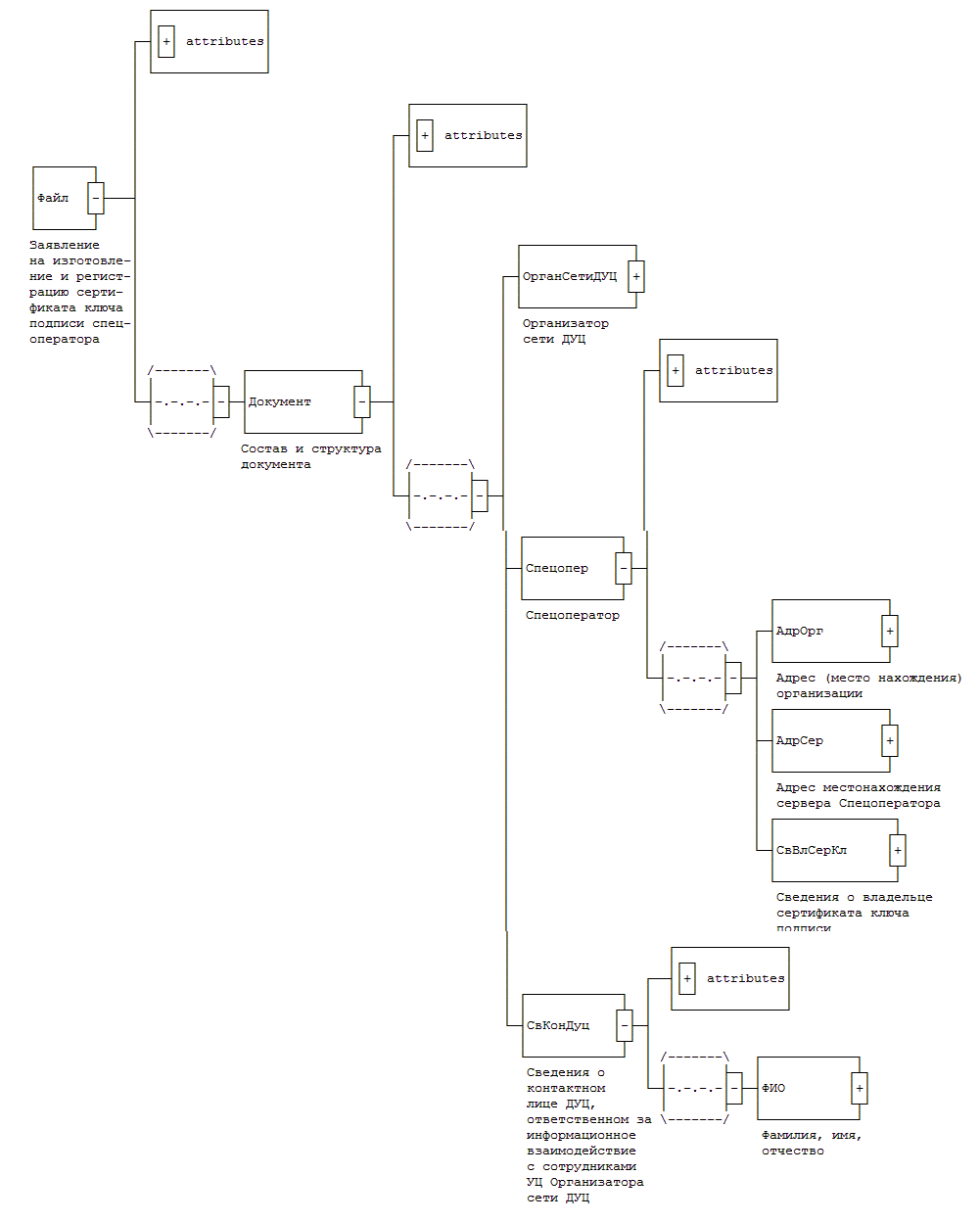 Имя файла схемы XML файла "Заявление на изготовление и регистрацию сертификата ключа подписи спецоператора" должно иметь следующий вид: