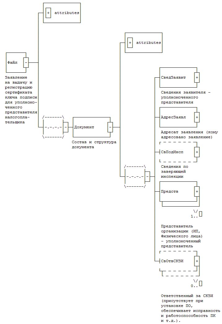 Настоящий документ описывает требования к XML файлам передачи в электронном виде заявления на выдачу и регистрацию сертификата ключа подписи для уполномоченного представителя налогоплательщика.