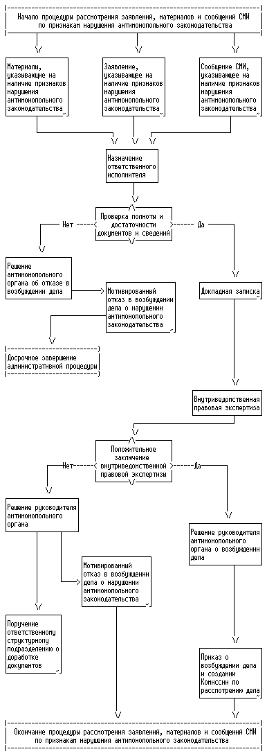 2. Блок-схема административной процедуры "Рассмотрение заявлений, материалов и сообщений СМИ по признакам нарушения антимонопольного законодательства"