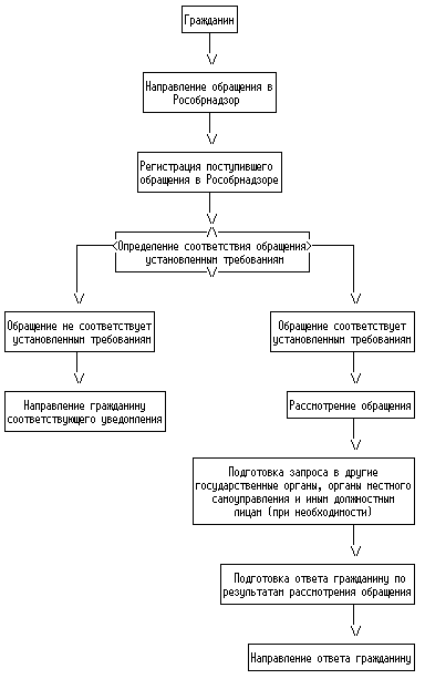 БЛОК-СХЕМА ПОСЛЕДОВАТЕЛЬНОСТИ АДМИНИСТРАТИВНЫХ ДЕЙСТВИЙ ПРИ РАБОТЕ С ПИСЬМЕННЫМИ ОБРАЩЕНИЯМИ ГРАЖДАН В РОСОБРНАДЗОРЕ