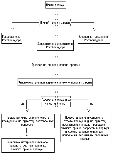 47. Блок-схема последовательности административных действий при проведении личного приема граждан в Рособрнадзоре представлена в приложении N 2 к настоящему Регламенту.