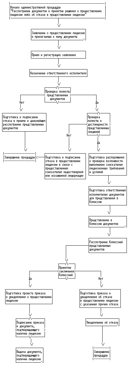 1. Блок-схема административной процедуры "Рассмотрение документов и принятие решения о предоставлении лицензии или об отказе в предоставлении лицензии"