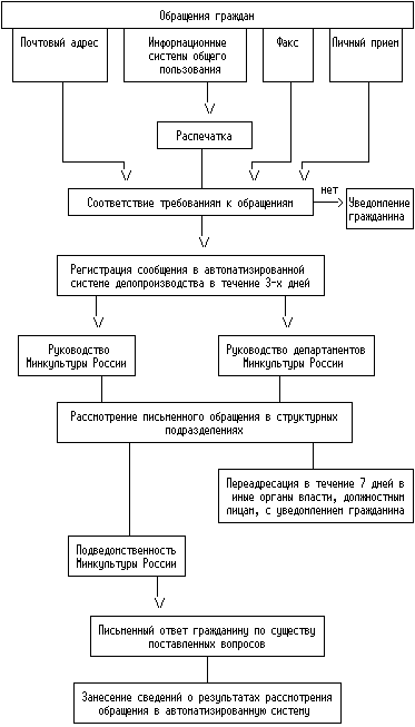 МИНИСТЕРСТВА КУЛЬТУРЫ РОССИЙСКОЙ ФЕДЕРАЦИИ ПО ИСПОЛНЕНИЮ ГОСУДАРСТВЕННОЙ ФУНКЦИИ ПО ОРГАНИЗАЦИИ ПРИЕМА ГРАЖДАН, ОБЕСПЕЧЕНИЮ СВОЕВРЕМЕННОГО И В ПОЛНОМ ОБЪЕМЕ РАССМОТРЕНИЯ ИХ УСТНЫХ И ПИСЬМЕННЫХ ОБРАЩЕНИЙ С УВЕДОМЛЕНИЕМ ГРАЖДАН О ПРИНЯТИИ РЕШЕНИЯ В УСТАНОВЛЕННЫЙ ЗАКОНОДАТЕЛЬСТВОМ РОССИЙСКОЙ ФЕДЕРАЦИИ СРОК