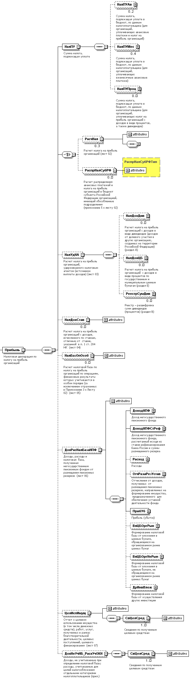 | Расчет налога на прибыль организаций (лист 02) | | РасчНал | С | НМ | Состав элемента представлен в табл. 4.14 Максимальное количество реализаций - 3, при этом элементы ТипНП не могут иметь одинаковые значения. Элемент обязателен при значении <ПоМесту>=213 | 214 | 215 | 216 (из табл.4.2) | |