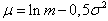 мю - медиана логарифмически-нормального распределения, рассчитываемая как: