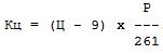 "3. Коэффициент, характеризующий динамику мировых цен на нефть (Кц), ежемесячно определяется налогоплательщиком самостоятельно путем умножения среднего за налоговый период уровня цен нефти сорта "Юралс", выраженного в долларах США, за баррель (Ц), уменьшенного на 9, на среднее значение за налоговый период курса доллара США к рублю Российской Федерации, устанавливаемого Центральным банком Российской Федерации (Р), и деления на 261: