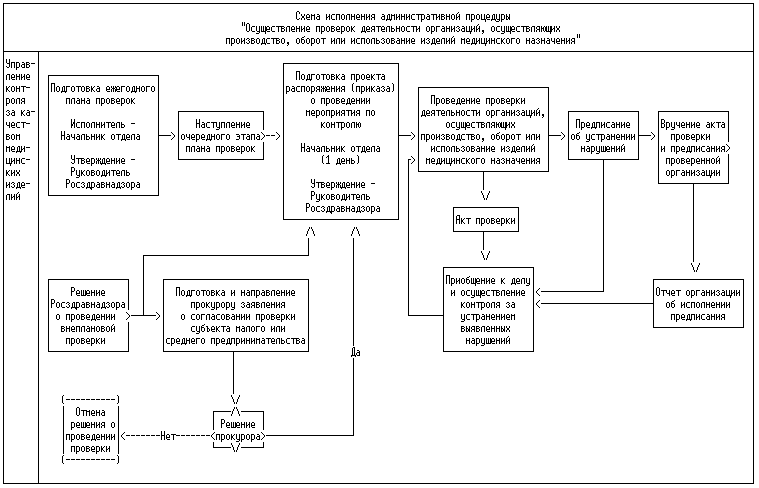 22. Административная процедура "Осуществление проверок деятельности организаций, осуществляющих производство, оборот или использование изделий медицинского назначения" исполняется в ходе плановых и внеплановых мероприятий по контролю за деятельностью организаций, осуществляющих производство, оборот и использование изделий медицинского назначения, в соответствии со схемой исполнения, предусмотренной приложением 3 к Административному регламенту.