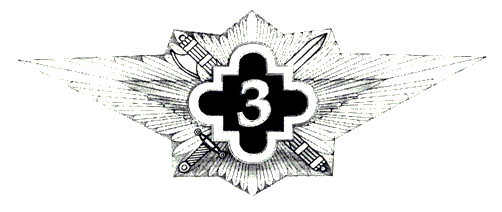 Звезда изготавливается из латуни, треугольник с мечом и ликторским пучком - из нейзильбера, фигурный щит - из томпака. На поле щита наносится зеленая силикатная эмаль, на окантовку щита и цифру "3" - белая силикатная эмаль.