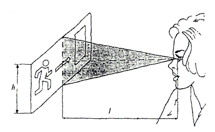 Вертикальный размер поля пиктограммы светового указателя (знака безопасности) в зависимости от дистанции распознавания знака определяется по формуле: