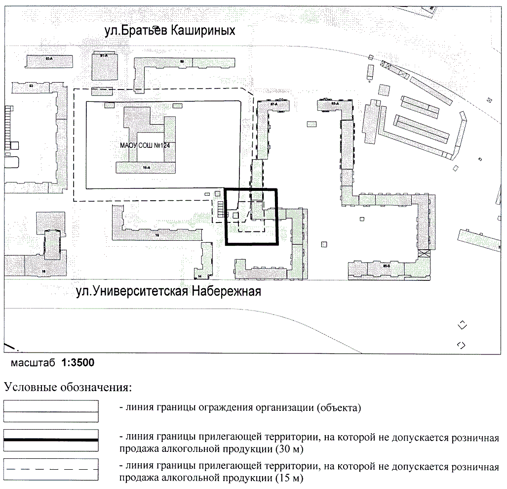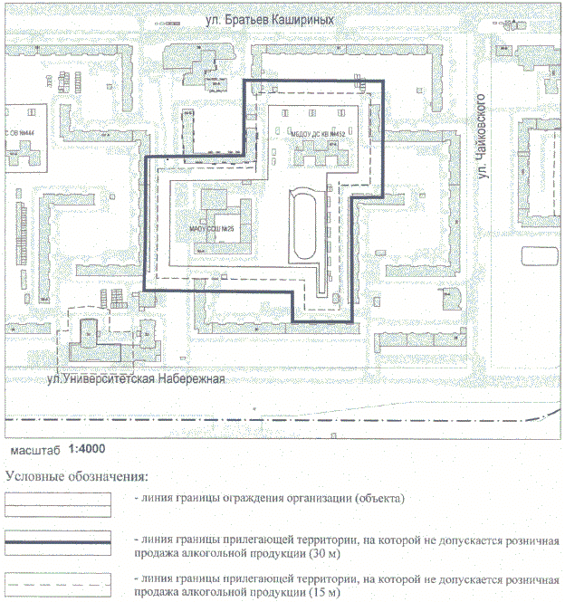 СХЕМА ГРАНИЦ ТЕРРИТОРИИ, НА КОТОРОЙ НЕ ДОПУСКАЕТСЯ РОЗНИЧНАЯ ПРОДАЖА АЛКОГОЛЬНОЙ ПРОДУКЦИИ, ПРИЛЕГАЮЩЕЙ К МБДОУ ДС КВ N 452, МАОУ СОШ N 25 АВТОШКОЛА ПО АДРЕСУ: Г. ЧЕЛЯБИНСК, КАЛИНИНСКИЙ РАЙОН, УЛ. БРАТЬЕВ КАШИРИНЫХ, 97-А, УЛ. УНИВЕРСИТЕТСКАЯ НАБЕРЕЖНАЯ 30-А