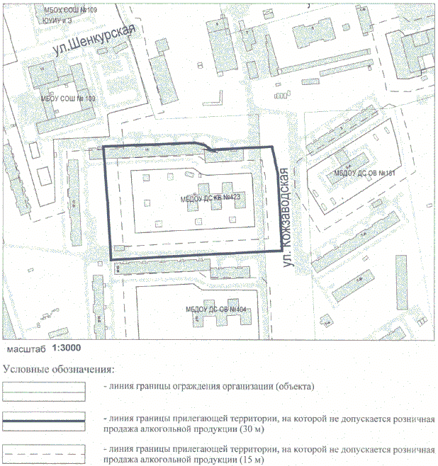 СХЕМА ГРАНИЦ ТЕРРИТОРИИ, НА КОТОРОЙ НЕ ДОПУСКАЕТСЯ РОЗНИЧНАЯ ПРОДАЖА АЛКОГОЛЬНОЙ ПРОДУКЦИИ, ПРИЛЕГАЮЩЕЙ К МБДОУ ДС КВ N 423 ПО АДРЕСУ: Г. ЧЕЛЯБИНСК, КАЛИНИНСКИЙ РАЙОН, УЛ. ШЕНКУРСКАЯ, 11-А