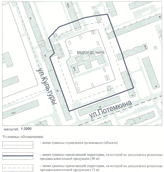 СХЕМА ГРАНИЦ ТЕРРИТОРИИ, НА КОТОРОЙ НЕ ДОПУСКАЕТСЯ РОЗНИЧНАЯ ПРОДАЖА АЛКОГОЛЬНОЙ ПРОДУКЦИИ, ПРИЛЕГАЮЩЕЙ К МБДОУ ДС N 416 ПО АДРЕСУ: Г. ЧЕЛЯБИНСК, КАЛИНИНСКИЙ РАЙОН, УЛ. КУЛЬТУРЫ, 59-А