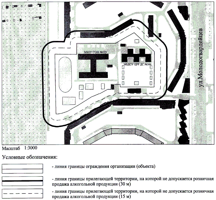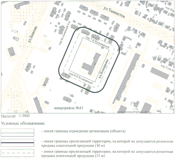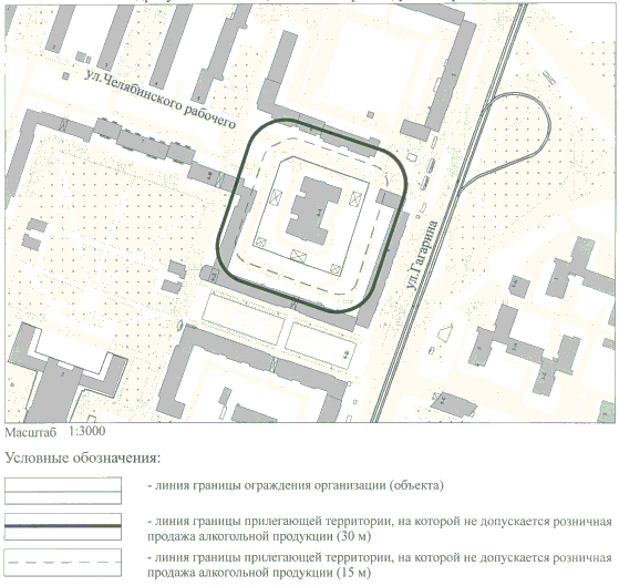 СХЕМА ГРАНИЦ ТЕРРИТОРИИ, НА КОТОРОЙ НЕ ДОПУСКАЕТСЯ РОЗНИЧНАЯ ПРОДАЖА АЛКОГОЛЬНОЙ ПРОДУКЦИИ, ПРИЛЕГАЮЩЕЙ К ЧЕЛЯБИНСКИЙ ПЕДАГОГИЧЕСКИЙ КОЛЛЕДЖ N 1 ПО АДРЕСУ: КАЛИНИНСКИЙ РАЙОН, УЛ. МОЛОДОГВАРДЕЙЦЕВ, 43