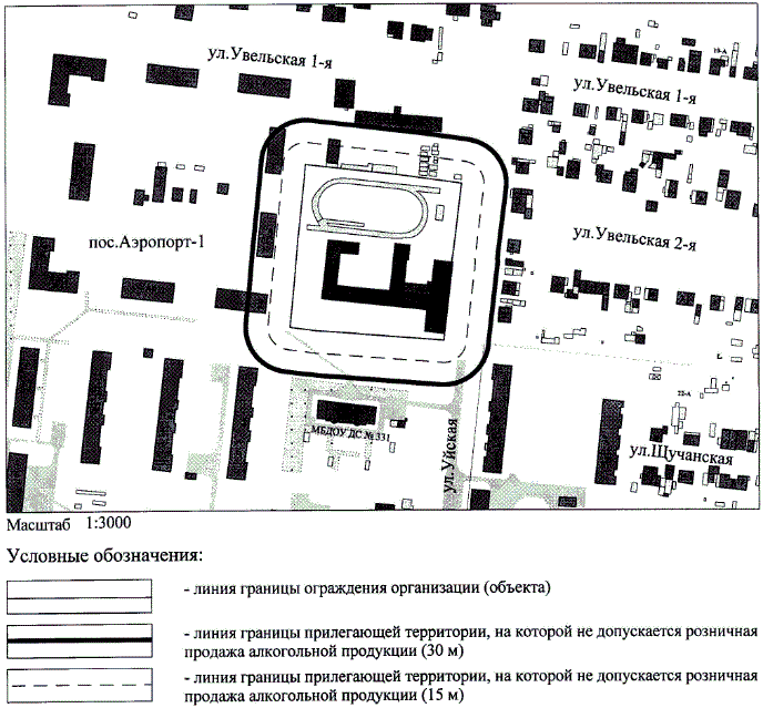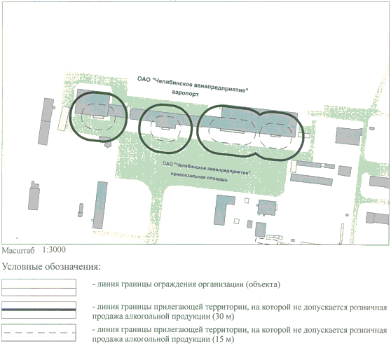 СХЕМА ГРАНИЦ ТЕРРИТОРИИ, НА КОТОРОЙ НЕ ДОПУСКАЕТСЯ РОЗНИЧНАЯ ПРОДАЖА АЛКОГОЛЬНОЙ ПРОДУКЦИИ, ПРИЛЕГАЮЩЕЙ К ОАО "ЧЕЛЯБИНСКОЕ АВИАПРЕДПРИЯТИЕ" ПО АДРЕСУ: Г. ЧЕЛЯБИНСК, МЕТАЛЛУРГИЧЕСКИЙ РАЙОН, АЭРОПОРТ (НЕЖИЛОЕ ЗДАНИЕ (ЗДАНИЕ ШТАБА), НЕЖИЛОЕ ЗДАНИЕ N 2 (АЭРОВОКЗАЛ), АДМИНИСТРАТИВНОЕ ЗДАНИЕ ШТАБА
