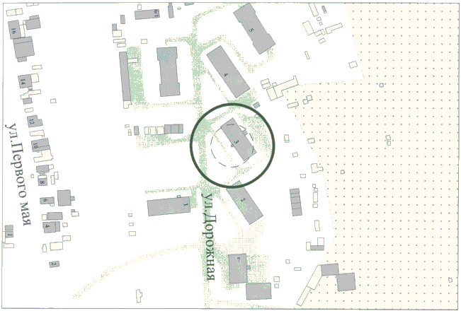 2) при отсутствии у организаций и объектов ограждений - как равноудаленное расстояние от входа (выхода) организаций и объектов;