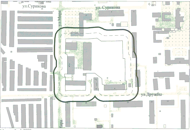 СХЕМА ГРАНИЦ ТЕРРИТОРИИ, НА КОТОРОЙ НЕ ДОПУСКАЕТСЯ РОЗНИЧНАЯ ПРОДАЖА АЛКОГОЛЬНОЙ ПРОДУКЦИИ, ПРИЛЕГАЮЩЕЙ К ООО "КОСМЕТИЧЕСКАЯ ХИРУРГИЯ" ПО АДРЕСУ: Г. ЧЕЛЯБИНСК, КАЛИНИНСКИЙ РАЙОН, УЛ. КИРОВА, 9/1 (НЕЖИЛОЕ ПОМЕЩЕНИЕ N 1)