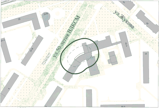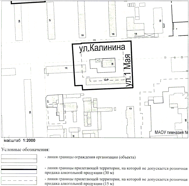 СХЕМА ГРАНИЦ ТЕРРИТОРИИ, НА КОТОРОЙ НЕ ДОПУСКАЕТСЯ РОЗНИЧНАЯ ПРОДАЖА АЛКОГОЛЬНОЙ ПРОДУКЦИИ, ПРИЛЕГАЮЩЕЙ К "308 ВОЕННАЯ ПРОКУРАТУРА. ПО АДРЕСУ: Г. ЧЕЛЯБИНСК, КАЛИНИНСКИЙ РАЙОН, УЛ.1 МАЯ, 38)"