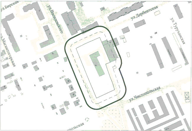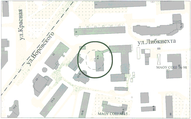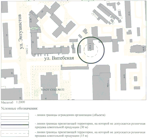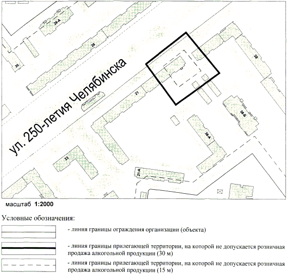 СХЕМА ГРАНИЦ ТЕРРИТОРИИ, НА КОТОРОЙ НЕ ДОПУСКАЕТСЯ РОЗНИЧНАЯ ПРОДАЖА АЛКОГОЛЬНОЙ ПРОДУКЦИИ, ПРИЛЕГАЮЩЕЙ К МБУЗ "ГОРОДСКАЯ КЛИНИЧЕСКАЯ БОЛЬНИЦА N 2" ПО АДРЕСУ: Г. ЧЕЛЯБИНСК, ЦЕНТРАЛЬНЫЙ РАЙОН, УЛ. ЭНТУЗИАСТОВ, 15-А