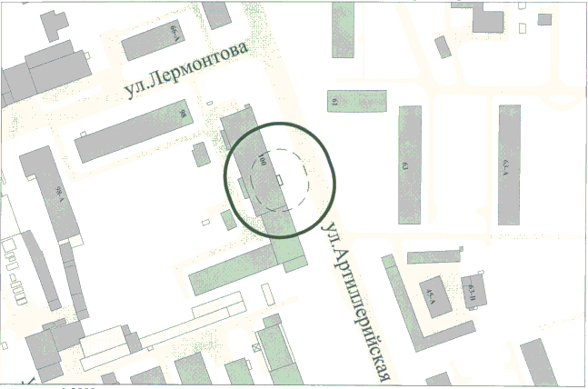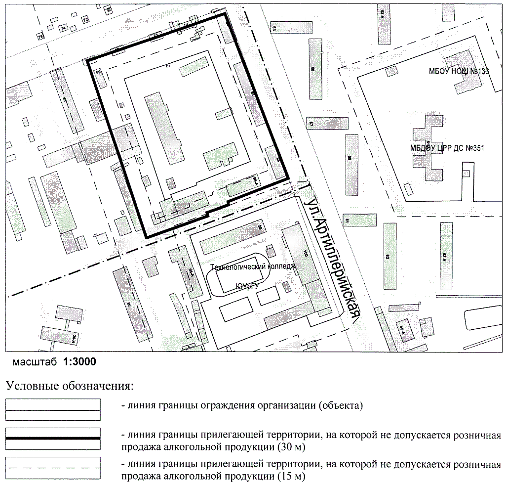 СХЕМА ГРАНИЦ ТЕРРИТОРИИ, НА КОТОРОЙ НЕ ДОПУСКАЕТСЯ РОЗНИЧНАЯ ПРОДАЖА АЛКОГОЛЬНОЙ ПРОДУКЦИИ, ПРИЛЕГАЮЩЕЙ К ФГБОУ ВПО "ЮУРГУ" (НИУ), ЮЖНО-УРАЛЬСКИЙ ГОСУДАРСТВЕННЫЙ УНИВЕРСИТЕТ, ТЕХНОЛОГИЧЕСКИЙ КОЛЛЕДЖ ЮУРГУ ПО АДРЕСУ: Г. ЧЕЛЯБИНСК, ТРАКТОРОЗАВОДСКИЙ РАЙОН, УЛ. АРТИЛЛЕРИЙСКАЯ, 100