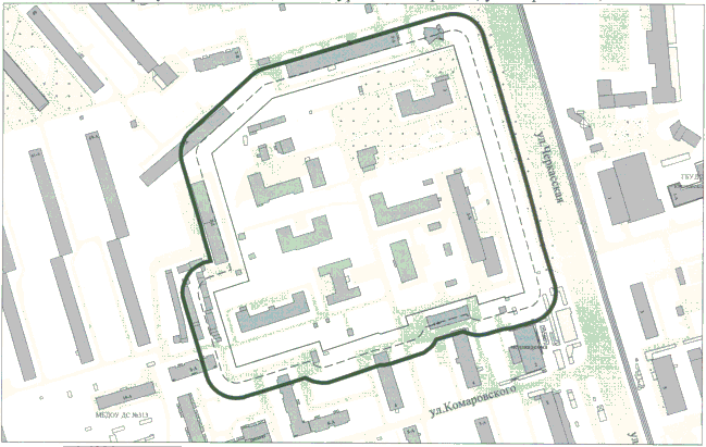 СХЕМА ГРАНИЦ ТЕРРИТОРИИ, НА КОТОРОЙ НЕ ДОПУСКАЕТСЯ РОЗНИЧНАЯ ПРОДАЖА АЛКОГОЛЬНОЙ ПРОДУКЦИИ, ПРИЛЕГАЮЩЕЙ К ЧЕЛЯБИНСКИЙ ФИЛИАЛ ФГБОУВПО РАНХИГС ПРИ ПРЕЗИДЕНТЕ РФ, МБУЗ "ГОРОДСКАЯ КЛИНИЧЕСКАЯ БОЛЬНИЦА N 2" ПО АДРЕСУ: Г. ЧЕЛЯБИНСК, ТРАКТОРОЗАВОДСКИЙ РАЙОН, УЛ. КОМАРОВА, 26
