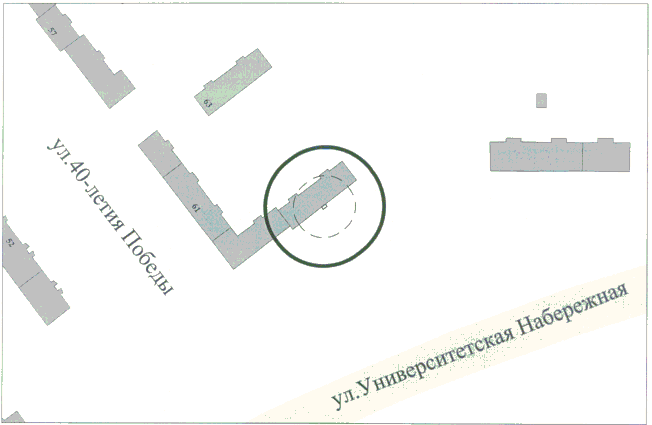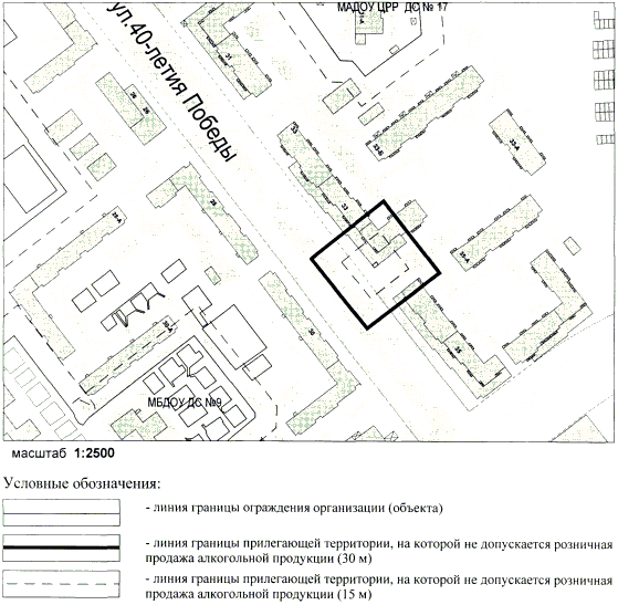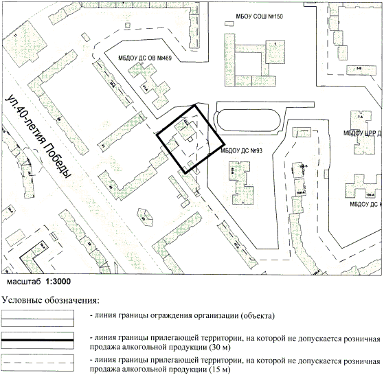 СХЕМА ГРАНИЦ ТЕРРИТОРИИ, НА КОТОРОЙ НЕ ДОПУСКАЕТСЯ РОЗНИЧНАЯ ПРОДАЖА АЛКОГОЛЬНОЙ ПРОДУКЦИИ, ПРИЛЕГАЮЩЕЙ К ООО "МЕДАЛЬЯНС" ПО АДРЕСУ: Г. ЧЕЛЯБИНСК, КАЛИНИНСКИЙ РАЙОН, УЛ. 40-ЛЕТИЯ ПОБЕДЫ, 61 (НЕЖИЛОЕ ПОМЕЩЕНИЕ N 3, ЭТАЖ 1)