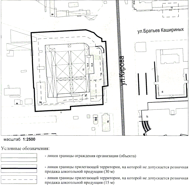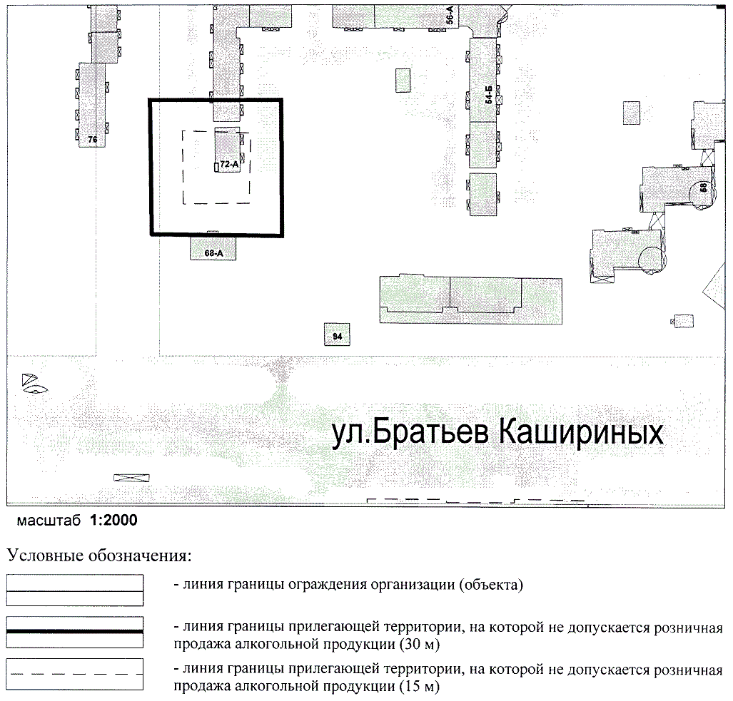 СХЕМА ГРАНИЦ ТЕРРИТОРИИ, ПА КОТОРОЙ НЕ ДОПУСКАЕТСЯ РОЗНИЧНАЯ ПРОДАЖА АЛКОГОЛЬНОЙ ПРОДУКЦИИ, ПРИЛЕГАЮЩЕЙ К "ООО УПРАВЛЯЮЩАЯ РЫНКОМ КОМПАНИЯ^ПЛАНЕТА ВОСТОК", ПО АДРЕСУ: Г. ЧЕЛЯБИНСК, КАЛИНИНСКИЙ РАЙОН, УЛ. КИРОВА, 72."