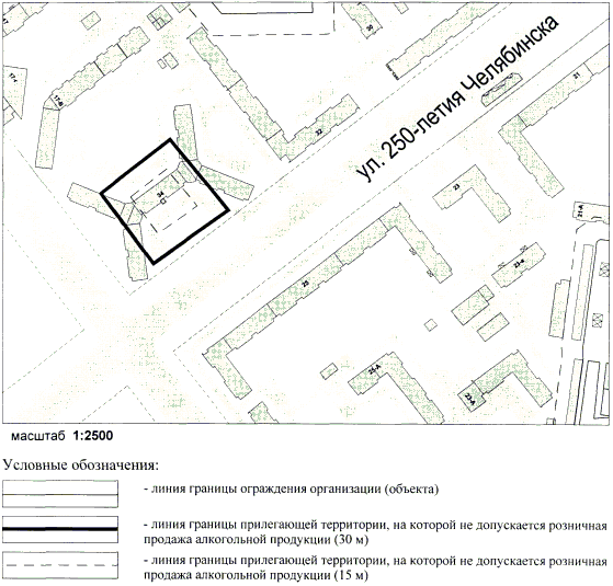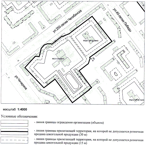 СХЕМА ГРАНИЦ ТЕРРИТОРИИ, НА КОТОРОЙ НЕ ДОПУСКАЕТСЯ РОЗНИЧНАЯ ПРОДАЖА АЛКОГОЛЬНОЙ ПРОДУКЦИИ, ПРИЛЕГАЮЩЕЙ К МАДОУ ЦРР ДС N 462, МБОУ СОШ N 151, АВТОШКОЛА, ПО АДРЕСУ: Г. ЧЕЛЯБИНСК, КАЛИНИНСКИЙ РАЙОН, УЛ. 250-ЛЕТИЯ ЧЕЛЯБИНСКА, 13-Б, 15