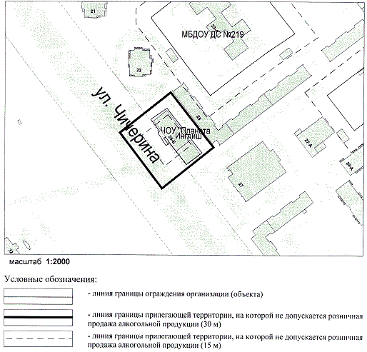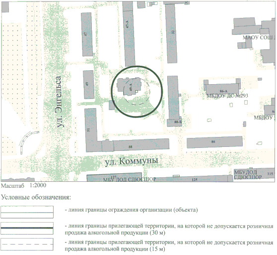 СХЕМА ГРАНИЦ ТЕРРИТОРИИ, НА КОТОРОЙ НЕ ДОПУСКАЕТСЯ РОЗНИЧНАЯ ПРОДАЖА АЛКОГОЛЬНОЙ ПРОДУКЦИИ, ПРИЛЕГАЮЩЕЙ К ООО "ПРОИЗВОДСТВЕННО-КОММЕРЧЕСКАЯ ФИРМА "КВАРЦ" ПО АДРЕСУ: Г. ЧЕЛЯБИНСК, ЦЕНТРАЛЬНЫЙ РАЙОН, УЛ. ЭНГЕЛЬСА, 49-А (НЕЖИЛОЕ ПОМЕЩЕНИЕ N 3)
