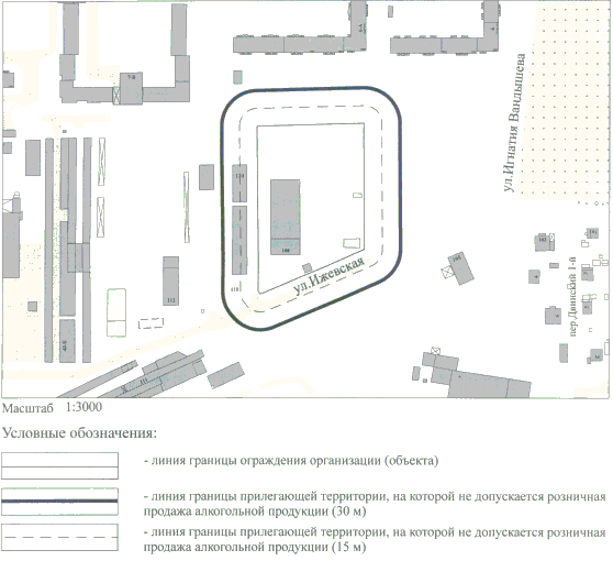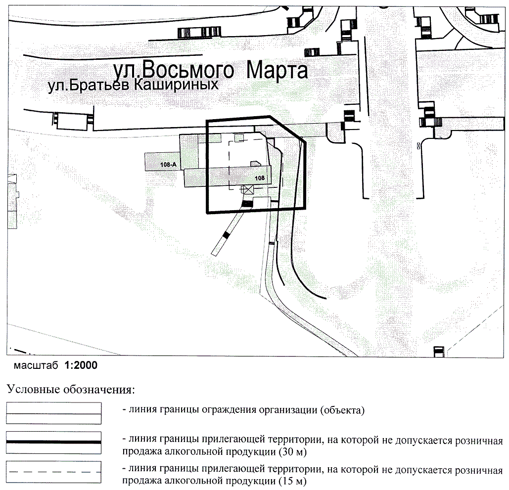 СХЕМА ГРАНИЦ ТЕРРИТОРИИ, НА КОТОРОЙ НЕ ДОПУСКАЕТСЯ РОЗНИЧНАЯ ПРОДАЖА АЛКОГОЛЬНОЙ ПРОДУКЦИИ, ПРИЛЕГАЮЩЕЙ К ООО "ГРАД" ПО АДРЕСУ: Г. ЧЕЛЯБИНСК, КАЛИНИНСКИЙ РАЙОН, УЛ. ИЖЕВСКАЯ, 108 (НЕЖИЛОЕ ПОМЕЩЕНИЕ (ПРОИЗВОДСТВЕННАЯ БАЗА)