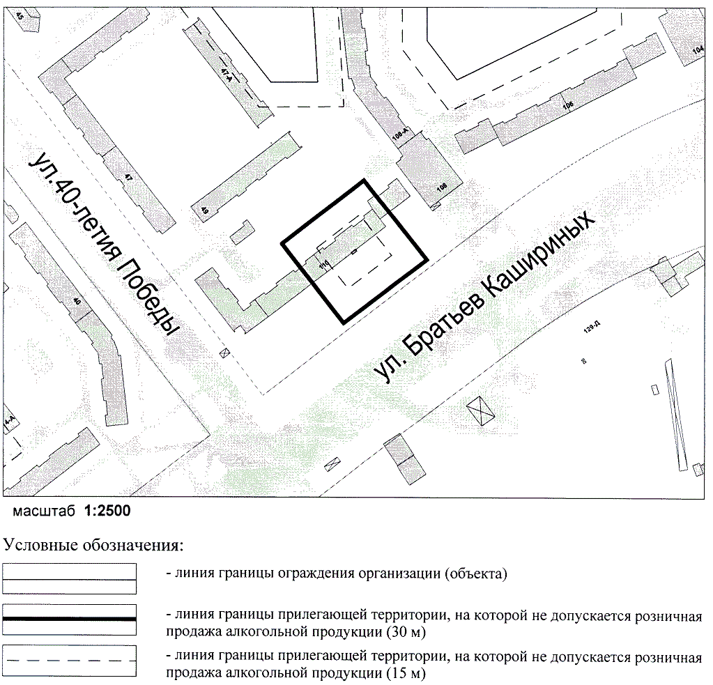 СХЕМА ГРАНИЦ ТЕРРИТОРИИ, НА КОТОРОЙ НЕ ДОПУСКАЕТСЯ РОЗНИЧНАЯ ПРОДАЖА АЛКОГОЛЬНОЙ ПРОДУКЦИИ, ПРИЛЕГАЮЩЕЙ К "ПОДРАЗДЕЛЕНИЕ ОХРАНЫ ТЕРРИТОРИИ БЫВШЕГО ЧЕЛЯБИНСКОГО ВОЕННОГО АВТОМОБИЛЬНОГО ИНСТИТУТА.ПО АДРЕСУ: Г. ЧЕЛЯБИНСК, КАЛИНИНСКИЙ РАЙОН,ПРОСПЕКТ ПОБЕДЫ, 187-СВЕРДЛОВСКИЙ ПРОСПЕКТ."