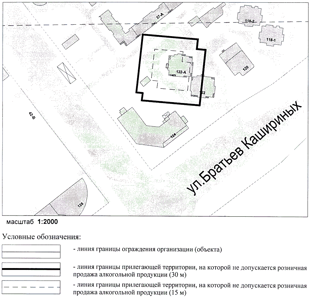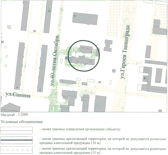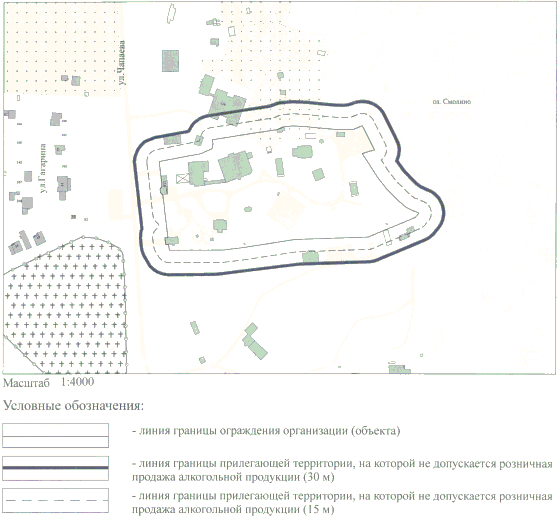 СХЕМА ГРАНИЦ ТЕРРИТОРИИ, НА КОТОРОЙ НЕ ДОПУСКАЕТСЯ РОЗНИЧНАЯ ПРОДАЖА АЛКОГОЛЬНОЙ ПРОДУКЦИИ, ПРИЛЕГАЮЩЕЙ К ООО "ГОСТИНИЧНЫЙ КОМПЛЕКС "БЕРЕЗКА" ПО АДРЕСУ: Г. ЧЕЛЯБИНСК, СОВЕТСКИЙ РАЙОН, УЛ. ЧАПАЕВА, 118 (СМОЛИНО)