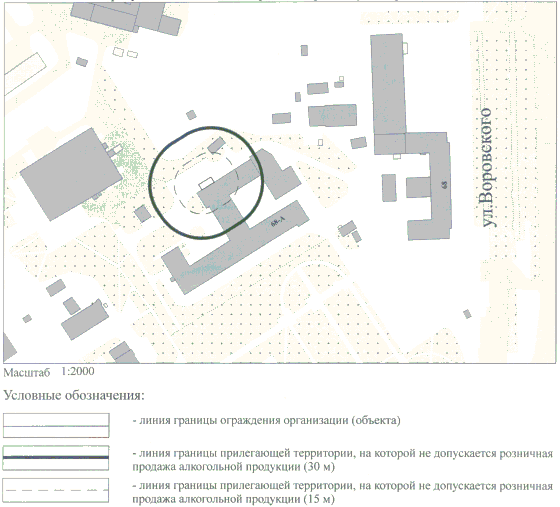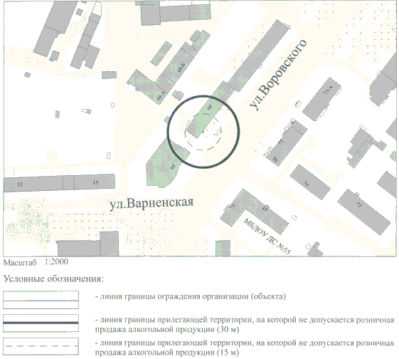 СХЕМА ГРАНИЦ ТЕРРИТОРИИ, НА КОТОРОЙ НЕ ДОПУСКАЕТСЯ РОЗНИЧНАЯ ПРОДАЖА АЛКОГОЛЬНОЙ ПРОДУКЦИИ, ПРИЛЕГАЮЩЕЙ К ООО "ОКО ПЛЮС" ПО АДРЕСУ: Г. ЧЕЛЯБИНСК, ЦЕНТРАЛЬНЫЙ РАЙОН, УЛ. ВОРОВСКОГО, 60 (НЕЖИЛОЕ ПОМЕЩЕНИЕ N 21, ЭТАЖ 1)