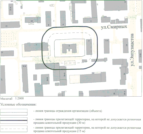 СХЕМА ГРАНИЦ ТЕРРИТОРИИ, НА КОТОРОЙ НЕ ДОПУСКАЕТСЯ РОЗНИЧНАЯ ПРОДАЖА АЛКОГОЛЬНОЙ ПРОДУКЦИИ, ПРИЛЕГАЮЩЕЙ К МКУЗ ДЕТСКИЙ САНАТОРИЙ N 1 ПО АДРЕСУ: Г. ЧЕЛЯБИНСК, ЦЕНТРАЛЬНЫЙ РАЙОН, УЛ. СМИРНЫХ, 5