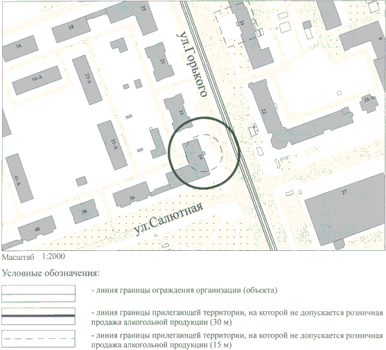 СХЕМА ГРАНИЦ ТЕРРИТОРИИ, НА КОТОРОЙ НЕ ДОПУСКАЕТСЯ РОЗНИЧНАЯ ПРОДАЖА АЛКОГОЛЬНОЙ ПРОДУКЦИИ, ПРИЛЕГАЮЩЕЙ К ООО "ПРОГРЕССИВНЫЕ МЕДИЦИНСКИЕ ТЕХНОЛОГИИ-ЛАБОРАТОРИЯ" ПО АДРЕСУ: Г. ЧЕЛЯБИНСК, ТРАКТОРОЗАВОДСКИЙ РАЙОН, УЛ. ГОРЬКОГО, 19 (НЕЖИЛОЕ ПОМЕЩЕНИЕ N 5, ЭТАЖ 1)