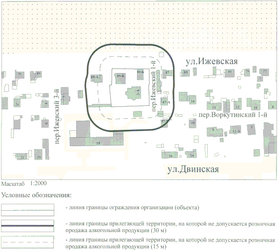 СХЕМА ГРАНИЦ ТЕРРИТОРИИ, НА КОТОРОЙ НЕ ДОПУСКАЕТСЯ РОЗНИЧНАЯ ПРОДАЖА АЛКОГОЛЬНОЙ ПРОДУКЦИИ, ПРИЛЕГАЮЩЕЙ К ЧДОУ "ДЕТСКИЙ САД "КОЛИБРИ" ПО АДРЕСУ: Г. ЧЕЛЯБИНСК, КАЛИНИНСКИЙ РАЙОН, УЛ. ИЖЕВСКАЯ, 89, КОРПУС В ПЕР. ИЖЕВСКИЙ 1-Й, 2-А