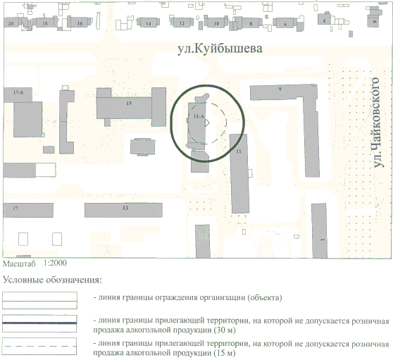 СХЕМА ГРАНИЦ ТЕРРИТОРИИ, НА КОТОРОЙ НЕ ДОПУСКАЕТСЯ РОЗНИЧНАЯ ПРОДАЖА АЛКОГОЛЬНОЙ ПРОДУКЦИИ, ПРИЛЕГАЮЩЕЙ К МБУЗ "ДЕТСКАЯ ГОРОДСКАЯ ПОЛИКЛИНИКА N 9" ПО АДРЕСУ: Г. ЧЕЛЯБИНСК, КУРЧАТОВСКИЙ РАЙОН, УЛ. КУЙБЫШЕВА, 11-А (НЕЖИЛОЕ ЗДАНИЕ (КОНСУЛЬТАТИВНО-ДИАГНОСТИЧЕСКИЙ ЦЕНТР)