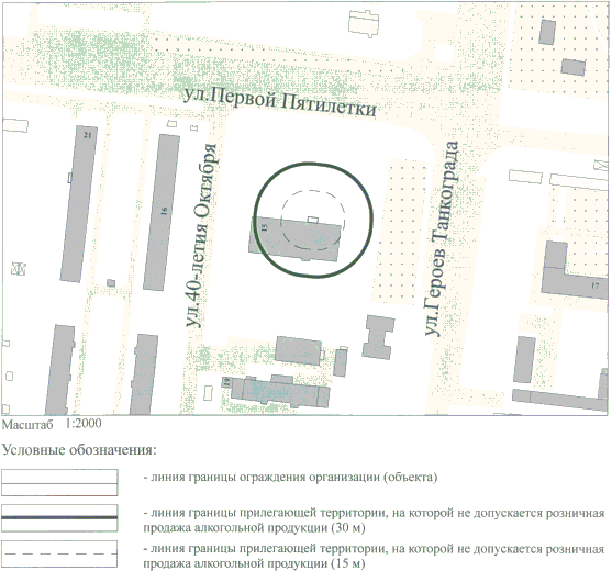 СХЕМА ГРАНИЦ ТЕРРИТОРИИ, НА КОТОРОЙ НЕ ДОПУСКАЕТСЯ РОЗНИЧНАЯ ПРОДАЖА АЛКОГОЛЬНОЙ ПРОДУКЦИИ, ПРИЛЕГАЮЩЕЙ К ООО "ОПТИК-ЦЕНТР" ПО АДРЕСУ: Г. ЧЕЛЯБИНСК, ТРАКТОРОЗАВОДСКИЙ РАЙОН, УЛ. 40-ЛЕТИЯ ОКТЯБРЯ, 15